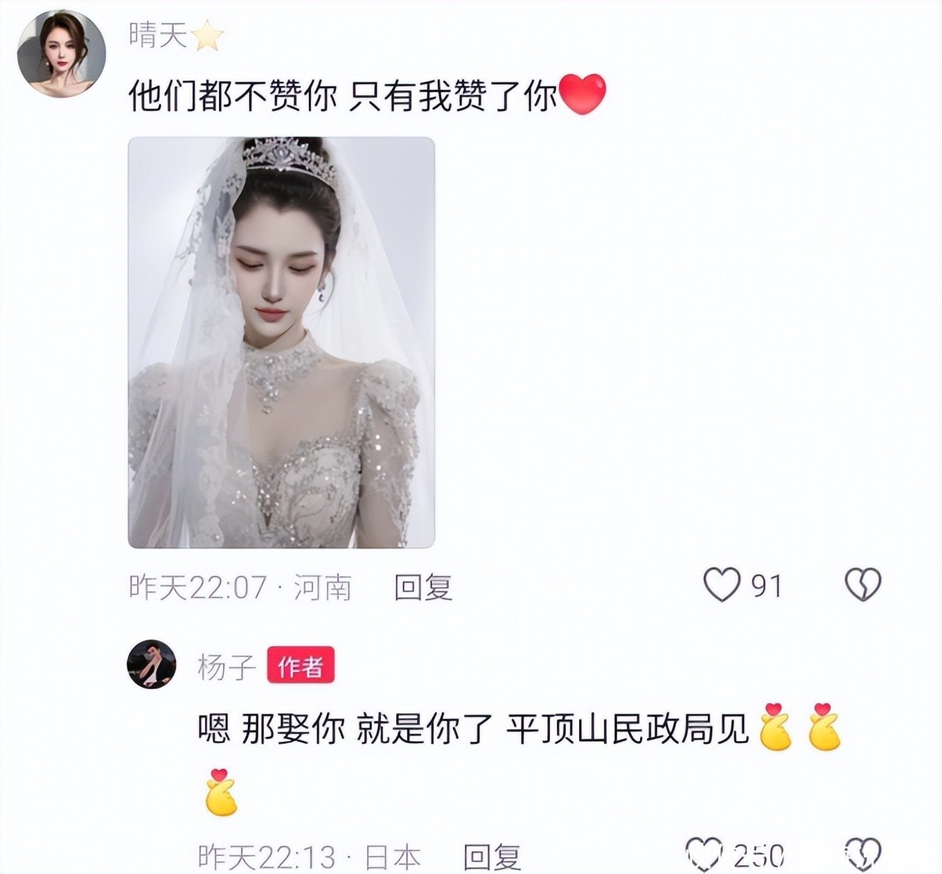 网友随便发张照片,杨子就跟没见过女人一样来者不拒。