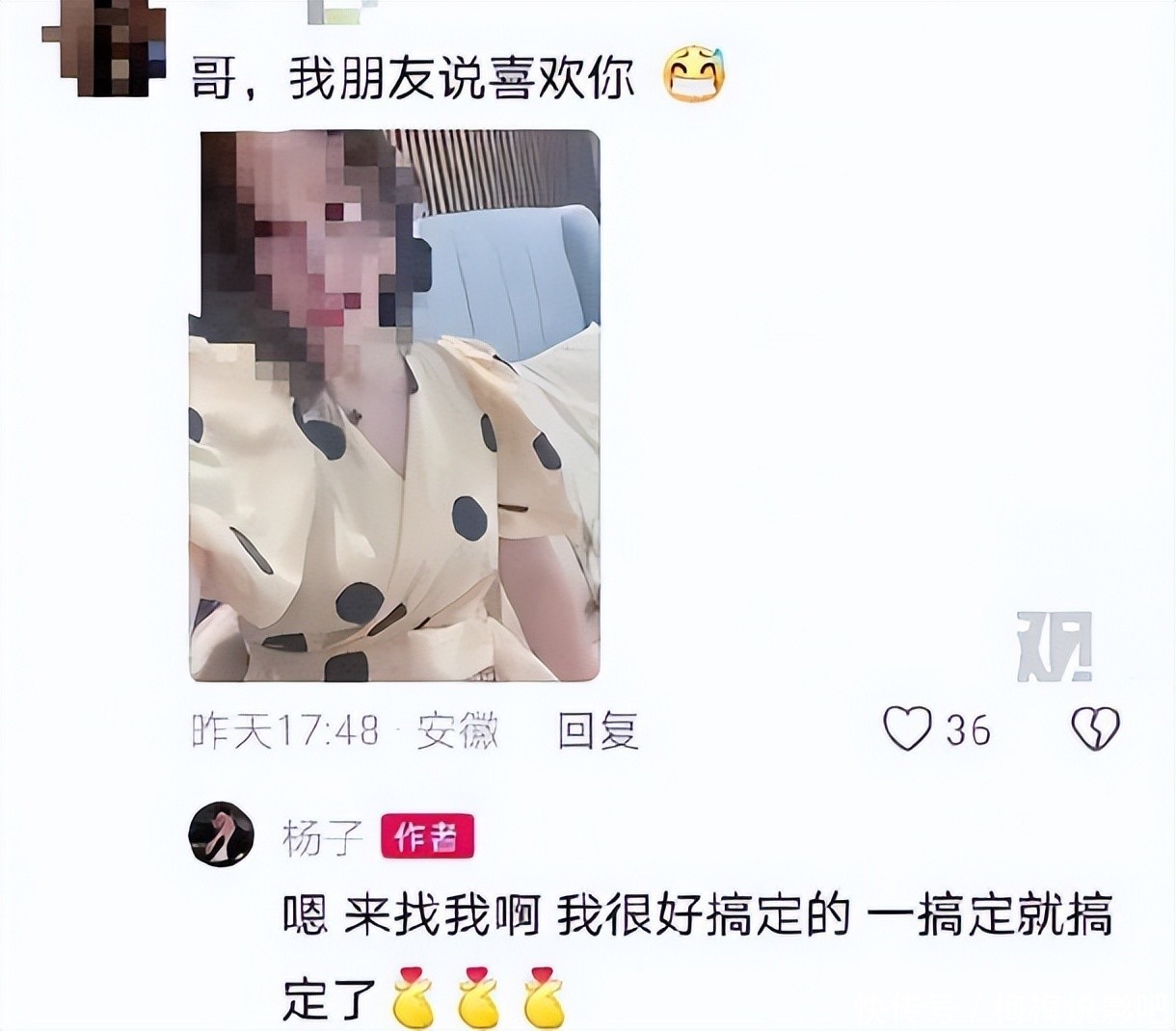 可谁知杨子竟没羞没臊的表示:“赶紧来找我,我很好搞定的”!